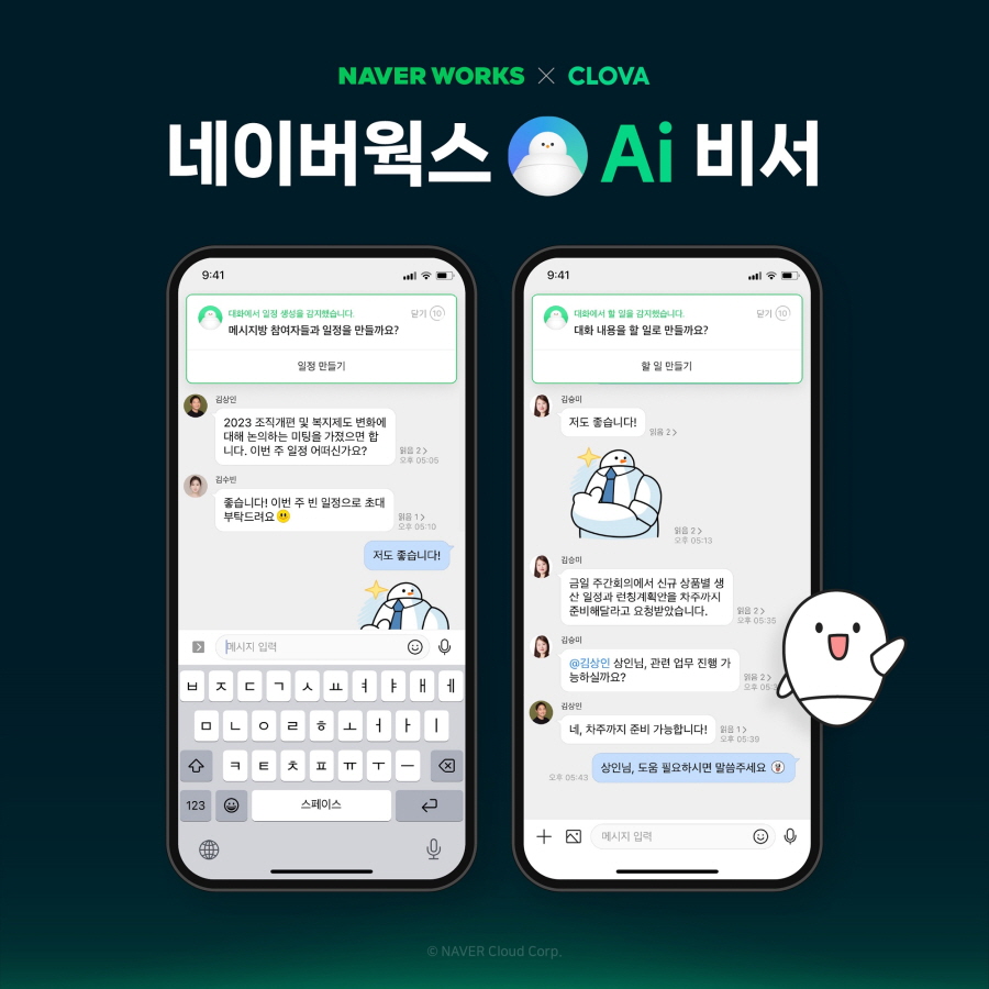 또한, 일하는 모든 사람들에게 인공지능 개인 비서를 제공하기 위해 네이버웍스 AI 비서(가칭)를 준비 중이다. 네이버웍스 AI 비서 서비스가 제공되면 별도의 학습과정 없이 비서에게 물어보는 것처럼 질문을 하면 원하는 정보를 얻을 수 있다. 예를 들어, 대화 내용을 AI 비서가 이해해 필요한 대화 내용을 노트에 정리, 해야 할 일을 등록해주거나, 주차 위치와 택배의 도착 정보를 알려주는 형태로 사용자를 돕는 것이 가능하다. 이를 통해 기업의 디지털 전환을 이끄는 것은 물론 더 나아가 스마트빌딩, 스마트시티 운영에 필요한 AI 수퍼앱으로 발전시킨다는 계획이다.