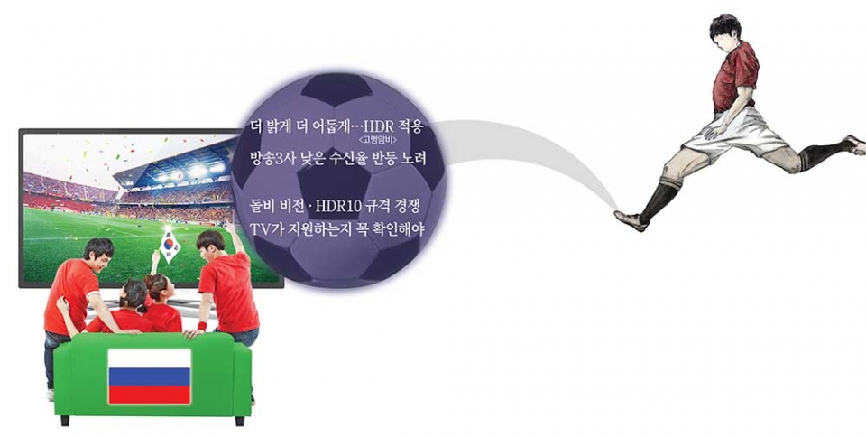 이달 열리는 러시아 월드컵은 올림픽 못지않은 국제적인 스포츠 행사다. 국내 지상파 방송사는 UHD의 화질을 더 선명하게 구현할 HDR기술을 월드컵 기간 내에 구현함으로써 올림픽에서의 부진을 만회하겠다는 복안이다.