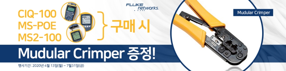 플루크네트웍스 온라인몰에서는 4월부터 휴대용 랜케이블 테스터기기를 구매하면 RJ45 툴인 모듈러 크림퍼 툴 증정 프로모션을 진행한다고 밝혔다.