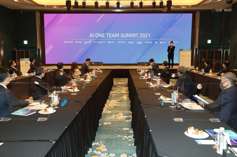 이날 열린 ‘AI 원팀 서밋 2021’에선 AI 원팀 참여 기관들이 함께 올해 이뤄낸 성과를 공유하고, 앞으로 추진할 2022년 AI 협력 계획을 발표했다. 또한 AI 경쟁력 강화를 위한 앞으로의 상호 협력 방향을 논의하고, 함께 AI 1등 대한민국을 만들어 나갈 것을 다짐했다.