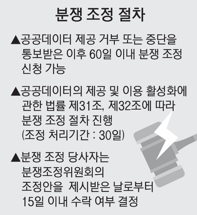 특히 △개인정보와 영업상 비밀 정보 등 데이터의 비공개 정보 포함 여부 △최신화 된 데이터 제공 △기계판독 가능한 형태의 데이터 제공 △개인정보 비식별 처리를 통한 데이터 제공 등 다양한 방법으로 사건을 중재할 예정이다.