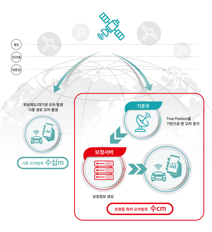 현재 가장 많이 쓰이고 있는 위성 기반 위치정보 서비스는 각 서비스 단말의 모듈에서 위성신호만 사용하다 보니 신호가 도달하는 과정에서 발생하는 신호굴절, 전파간섭 등을 보정할 수 있는 방법이 없어 실제 위치와 큰 오차가 발생했다. 또한 기존 초정밀 위치정보도 전국적으로 서비스가 제공되지 않아 정확하고 안전한 서비스가 핵심인 모빌리티 서비스에 많은 제약이 있었다.