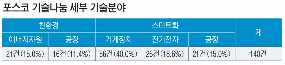 포스코가 이전하는 기술은 친환경·스마트화 분야로 디지털(전기·전자), 그린(에너지·자원) 외에도 기계·장치 등 다양하게 구성돼 있다.