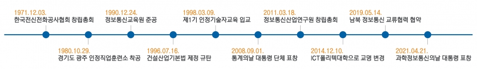 ICT폴리텍대학은 43년 동안 과학기술정보통신부와 회원사의 적극적인 지원에 힘입어 약 20만명의 정보통신 시공기술인력을 양성하며 국내 유일의 IT 시공분야 특성화 교육기관으로 자리매김했다.