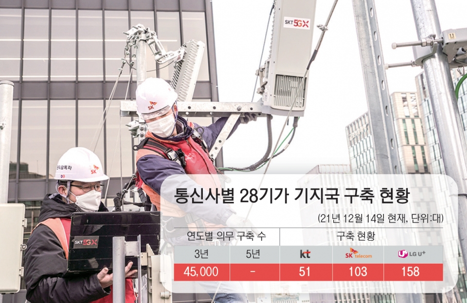 의무이행 기한을 사흘 앞둔 현재 통신3사의 28㎓ 5G 기지국 구축 이행률이 45,000대 중 312대만 구축돼 0.7%에 불과한 것으로 나타났다.